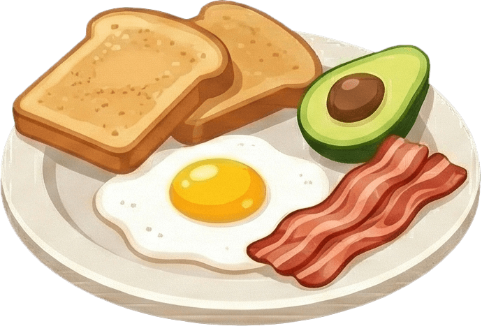 2 jajka sadzone, chrupiący boczek, grzanka z chleba na zakwasie "BoChenek", sos holenderski, sałatka z pomidorem, ogórkiem świeżym, słonecznik, winegret